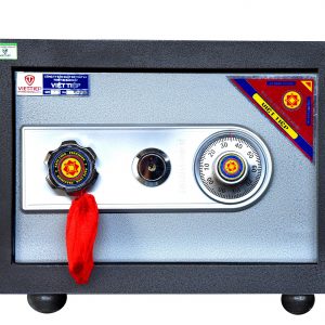 - Là két sắt có kích thước vừa phải, được cấu tạo làm bằng thép 2 lớp không gỉ và được bao phù bằng sơn tĩnh điện dao cấp bóng đẹp. Ở bên trong thân két là hoạt chất chống cháy giúp cho két sắt có thể chịu được nhiệt độ lên đến 2000 độ C trong 2 giờ,